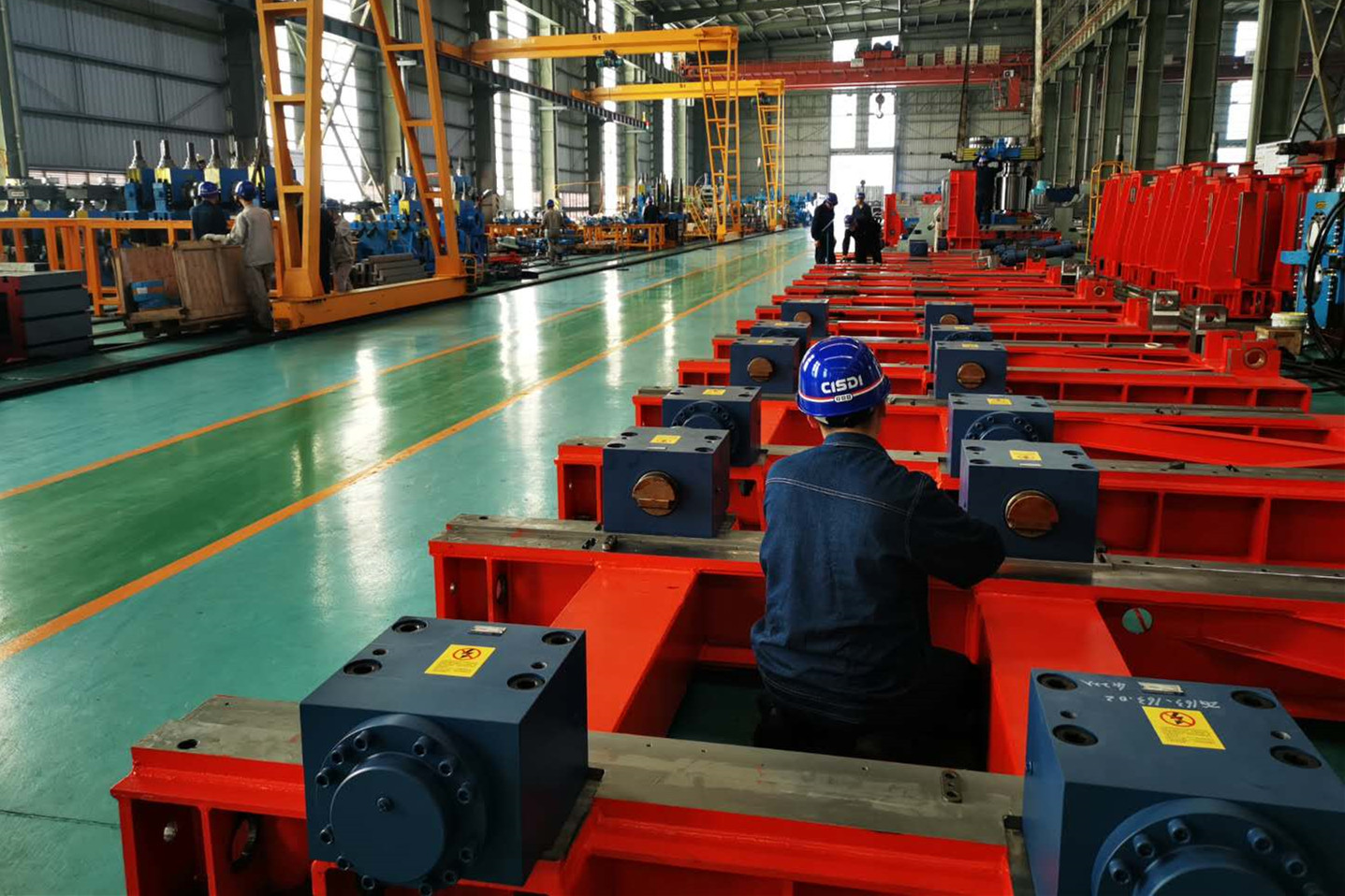火花四溅、焊机争鸣的结构车间,工人师傅们正全力以赴进行太行刮板取料机、瑞丰连铸机和宝钢水渣转鼓的毛坯焊接;机器飞转、光亮耀眼的金工车间,正紧张有序的进行宝钢水渣项目、瑞丰连铸项目、太行刮板取料机项目和石钢项目的切削加工;整齐有序、错落有致的总装车间,快速组装,精准测量,正在完成永洋轻轨项目、石钢搬迁项目、瑞丰连铸项目、常宝项目和石横特钢项目的设备装配和测试;在库房升级改造和设备优化配置的施工现场,交叉有序、热火朝天,抽调的车间员工团结一致提前完成管线铺设任务,为数字化车间建设打好基础。
