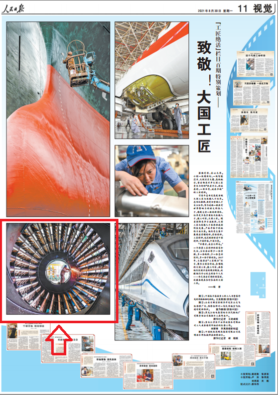 8月30日,《人民日报》第11版“工匠绝活”栏目推出百期特别策划——致敬!大国工匠,致敬奋战在各行各业的大国工匠。其中,安博电子官方网站(简称:赛迪装备)工人打磨工作镜头入选,获《人民日报》点赞。