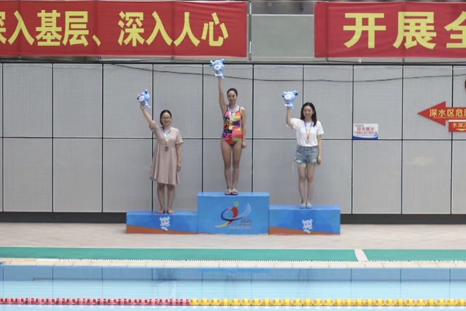 9月12日,游泳比赛在区游泳馆如期举行。游泳比赛分为蛙泳和自由泳两种泳姿,分别设男子、女子50m、100m、200m和4*50m混合接力7个项目,共有27个代表队的173名运动员参加比赛。我安博电子官方网站员工王梦旎应邀代表科学城江津园区队参加比赛,并最终荣获女子200m自由泳银牌的好成绩。
