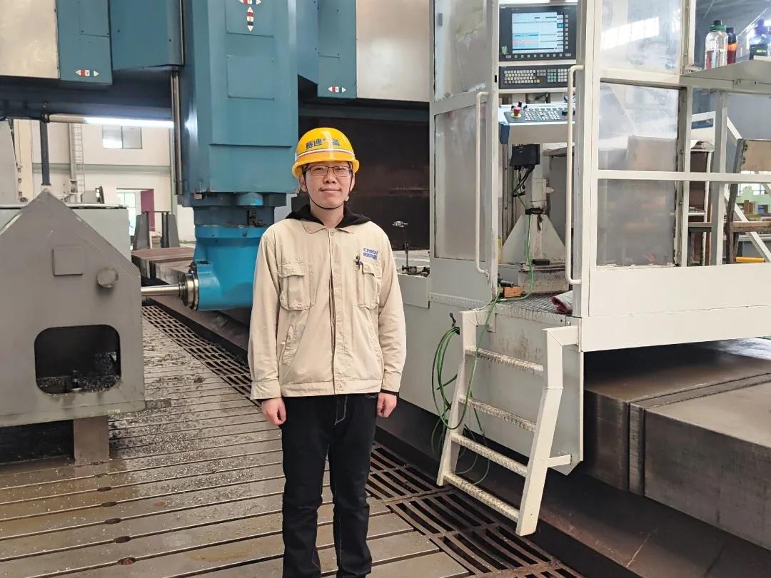 吴波,30岁,金工车间移动龙门加工中心主操。在接到上机架和下机架两个“巨无霸”的加工任务后,吴波立即召集斯柯达HCW3-260铣镗床、移动龙门分段定位横梁加工中心VECOWILL 600TAG等大型设备操作者对加工任务进行分解,对加工过程中可能遇到的难点进行预判和消化。作为国内首台套产品,此类设备的加工没有任何经验可借鉴,吴波从刀具和操作上做优化,克服机架重量分布不均导致加工精度难以控制等难题,保证精度要求。为满足生产需求,他组织班组人员采取24小时连轴转的方式,与时间赛跑,最终不负众望,圆满地完成此次艰难的加工任务。