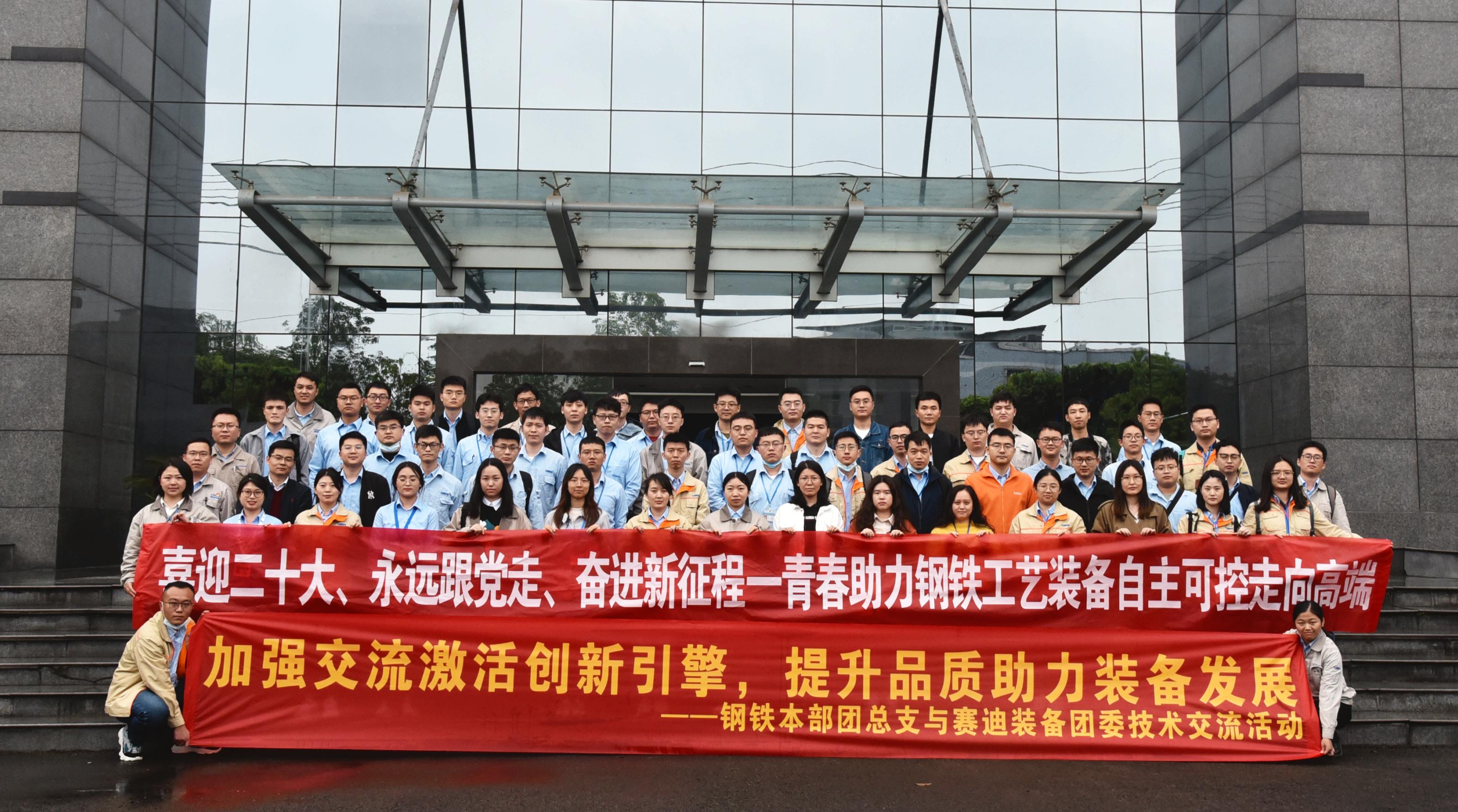 在赛迪集团钢铁事业本部党总支、赛迪装备党委、赛迪集团团委指导下,2022年4月15日,“喜迎二十大、永远跟党走、奋进新征程 一青春助力钢铁工艺装备自主可控走向高端”主题装备技术交流活动在赛迪装备江津制造中心举行。此次活动由赛迪集团钢铁事业本部团总支、赛迪装备团委联合举办,来自赛迪集团钢铁事业本部轧钢与装备、连铸、炼铁等8个部门共59名青年参加了此次活动。赛迪装备产品设计研究院院长陈连运、副院长李忠欣、团委书记许玉婷等13人参与了参观讲解与座谈交流。