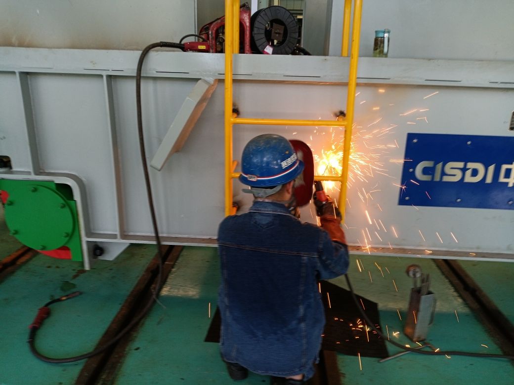 走进车间,一股股热气迎面袭来,现场气温高达50多度,工人们虽然已经汗流浃背,但工作热情丝毫没有降低。现场的焊工按照工艺焊接要求,施焊周边不能用风扇等降温设备,且必须穿厚实的焊接用牛仔服、戴着厚重的防尘面罩,经受着300多度的焊接高温辐射。这样的情况下,不到五分钟,汗水就会浸湿厚厚的焊工服,高温又把它烘干,如此反复。他们凭借着顽强的毅力与高温作战,一手面罩,一手焊枪,在电与火之间续写着赛迪精神。