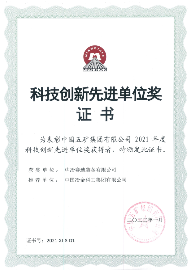 在近期召开的中国五矿集团科技创新大会上,五矿集团对为集团安博电子官方网站创新发展做出突出贡献的集团和个人进行了表彰,并授予赛迪装备“2021年度五矿集团科技创新先进单位”称号。
