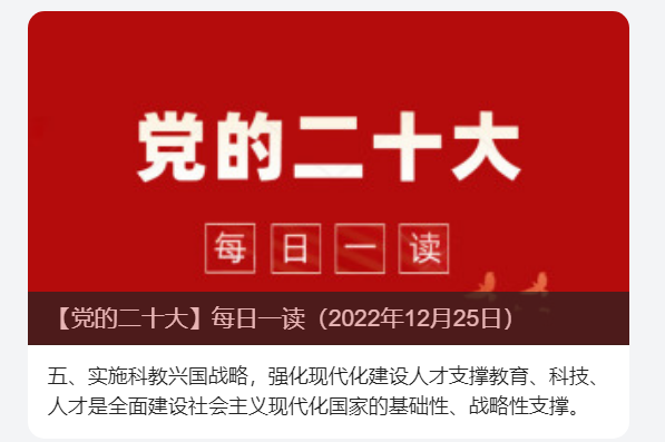 为了让党的二十大精神入脑入心、见行见效,党委宣传部印制学习小册子,将党的二十大报告、报告学习要点编入其中,为各党支部、工团以及班组提供学习参考材料;开设轻推“党的二十大每日一读”专栏,由党员、群众、青年代表配音频播报,分44段每日进行推送,让更多员工参与到党的二十大精神宣传中;联合工会创新开展“板凳课堂”,让党的二十大精神进车间、进班组,引导一线员工深刻领会报告内涵,在岗位上建新功、争先锋。