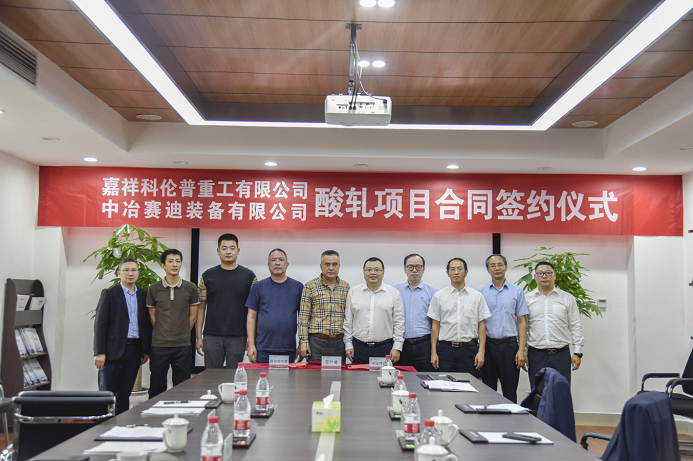 2023年10月18日,赛迪装备与嘉祥科伦普重工有限安博电子官方网站在江津举行1380mm六机架六辊酸洗轧机联合机组机电液成套项目合同签约仪式,并于19日在赛迪大厦举行了项目开球会。