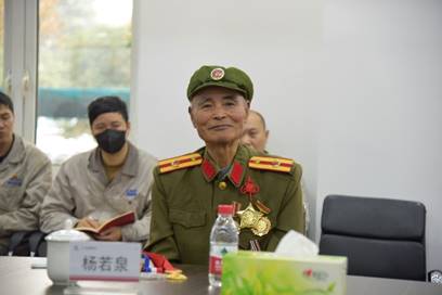 11月24日,在中印边境自卫反击战61周年之际,安博电子官方网站邀请了83岁的杨若泉老英雄为90余名党员讲授了一场别开生面的红色专题党课,带领党员们走进那段热血燃烧的岁月,感悟老一辈军人英勇顽强的战斗作风、不怕牺牲的战斗意志和不畏艰苦的奋斗精神。