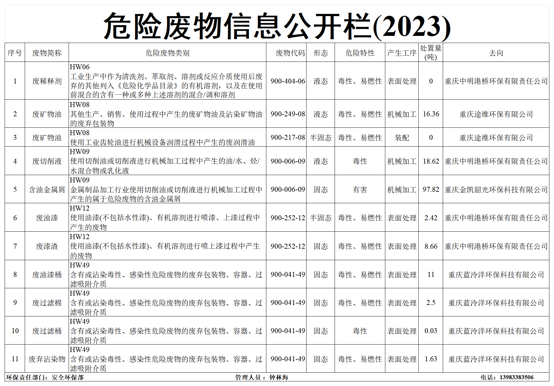 2023年度危险废物信息公开栏